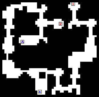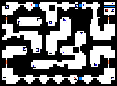 从卡碧尼塔向东走可以发现洞窟,进入后可以发现通路是环卷形状的,要注意从左面的通道是可以进入地下五层的,在通道中还是黑色的陷井注意避开,否则要重新进入(返回B1的a处)。