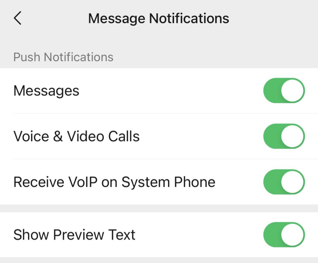 1 首先检查你的微信/WeChat 设置,如果已经有了“使用系统电话接听来电(Receive VoIP on System Phone)”,则不再需要任何操作,打开就会通过 CallKit 接听来电。但之后工信部是否会再次影响就不得而知。