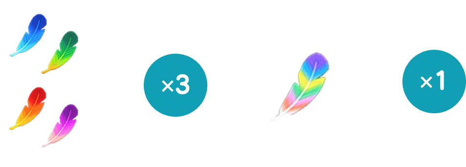 3 根一般羽毛必须叠放为 1 组才能进行交换。